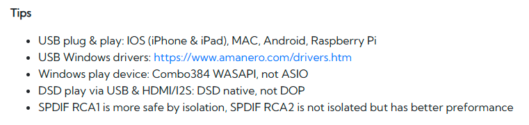 • USB Windows drivers: https://www.amanero.com/drivers.htm